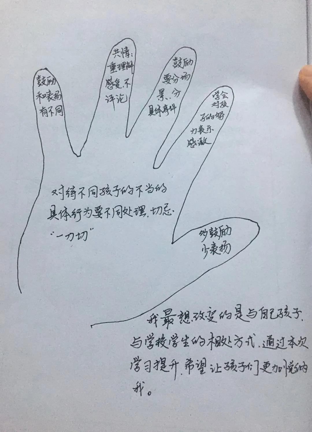 王莹老师提出的正面管教是一种既不惩罚也不骄纵的教育方法。而首先令我感受最深的就是“和善与坚定并行”以及“赢得孩子”。与现在普遍执行的以奖励和惩罚为基础的管教方法有别,正面管教是一种基于问题解决的教育方式。孩子是随时随地都在变化的发展的社会人,他有自己的思想和信念,特别是越大的孩子越想实现自己在班级中的价值,基于孩子这样的心理,我们在日常教学中要践行一种相互尊重和重在与生沟通的理念。