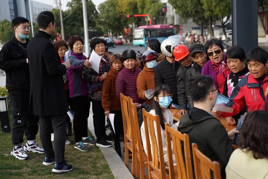 Part 3活动现场 上午八点半左右,在爱心社震泽组大部分成员到齐后,大家准时在约定好的街心公园开展活动。组员们先将准备好的横幅横挂在了后方的树上,树前摆放放着传单和问卷的桌子,桌子下方的抽屉里放入相关的奖品,如洗手液和给小朋友绘画布袋。在所有准备活动做好了以后,我们这次的禁塑令宣传活动就开始了。与大家原先以为的不同,在上班的早高峰,人数应当不会太多,结果开始不一会儿就聚集了一大批的叔叔阿姨。可能是早已开学的缘故,来的人主要是老年人群,小朋友较少,即使少数几个也是学龄前儿童,布袋作画的方案很难得到施展,算是一个小小的遗憾;但与绘画方面的冷清截然相反,有奖问答的桌子前人头攒动,负责的同学几乎忙不过来,场面异常火热。问题主要是简答题,比如“白色污染有什么危害”、“国家实行限塑令的目的”、“什么是可降解塑料”等等。热火朝天的现场在活动进行中大家发现,部分问题可能难度过大,很少有叔叔阿姨能回答出来,于是我们及时更换了一些更贴近生活的题目,例如“平时购物多使用布袋还是塑料袋”等等。在面对这些简化过的题目,人们能够完成大部分试题,包括那些退休后的爷爷奶奶,甚至一些学龄前儿童。由此可见,生活中大部分人还是对限塑以及相关意识有过了解的,对于降低不可降解塑料的使用也是给予很大的支持和理解。