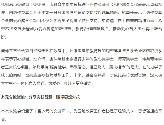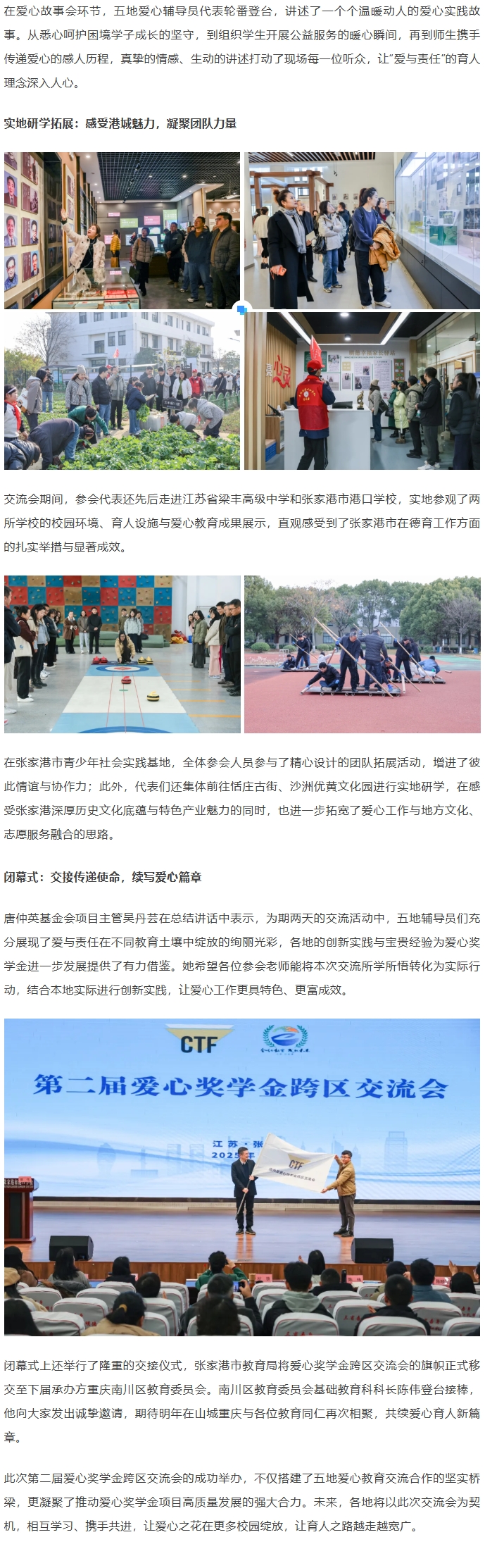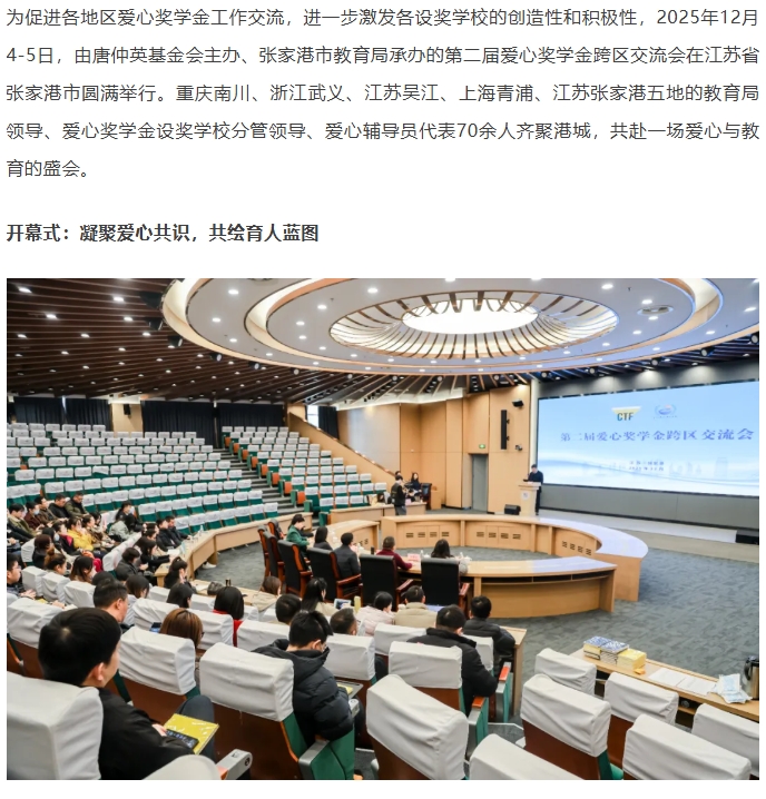 第二届爱心奖学金跨区交流会在江苏张家港顺利召开