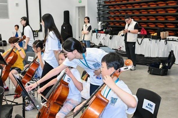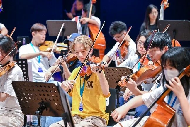 我们的助教同学们,一部分来自山东大学艺术学院,一部分来自同济大学艺术与传媒学院。作为大哥哥大姐姐,他们贴心入微,时刻在乐团成员身边,确保每位营员都能跟上排练节奏。